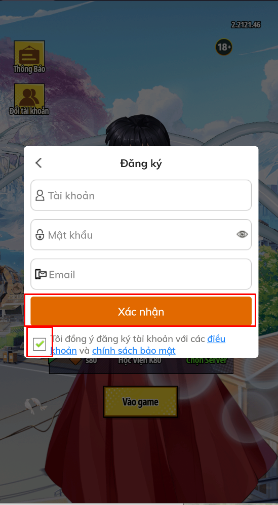 Lưu ý: Bắt buộc Học Viên phải thao tác cập nhật thông tin tài khoản Email hoặc SĐT và kích hoạt để tiến hành lấy mật khẩu tài khoản vào game