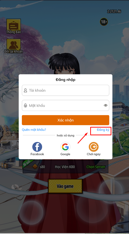 - Ở giao diện đăng nhập, Học Viên tiến hành đăng nhập tài khoản vào game của mình. Sau đó nhấn vào nút "Đăng Nhập"