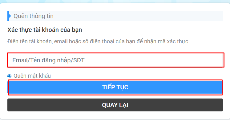 *Thư xác thực sẽ được gửi qua địa chỉ email đăng ký tài khoản đó